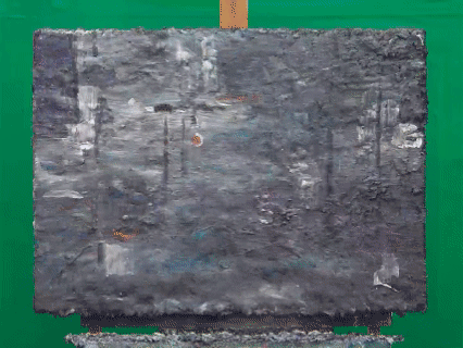 黄奎于2022年开启的“硬画”系列以反复重绘一张画布并制成连续影像的密集型劳作——平均经百次重绘,至多者达千次——不断引入其在同一主题下丰厚的艺术史、影像史与个人视觉经验,耦合多重视觉闪念,进而跨入绘画的质料—时空,拼尽全力修复绘画—物在技术加速时代作为“艺术品的潜在一体性”[1]。历经3年总计约绘制了万余张静帧画面,黄奎以惊人的速度与工作量具身体悟了曾惊诧75后一代中国艺术家的当代绘画语言,如擦除、泼溅、手势性涂抹、刮画的技术价值及在创作实践中的具体表现语义,并与同批中国艺术家一样不满于静态绘画的片面性及/或必然导向的典型性,黄奎选择以修复专家的视角不懈修改画面,直面本世纪初叶所呈现的驳杂时代语境与为平台化技术集团所肢解的个人身份困境。作品述及潜在的国际争端、唯技术论引发的道德危机,以及个人生命经验与宏观历史、现实,乃至宇宙运行规律的运作关系。