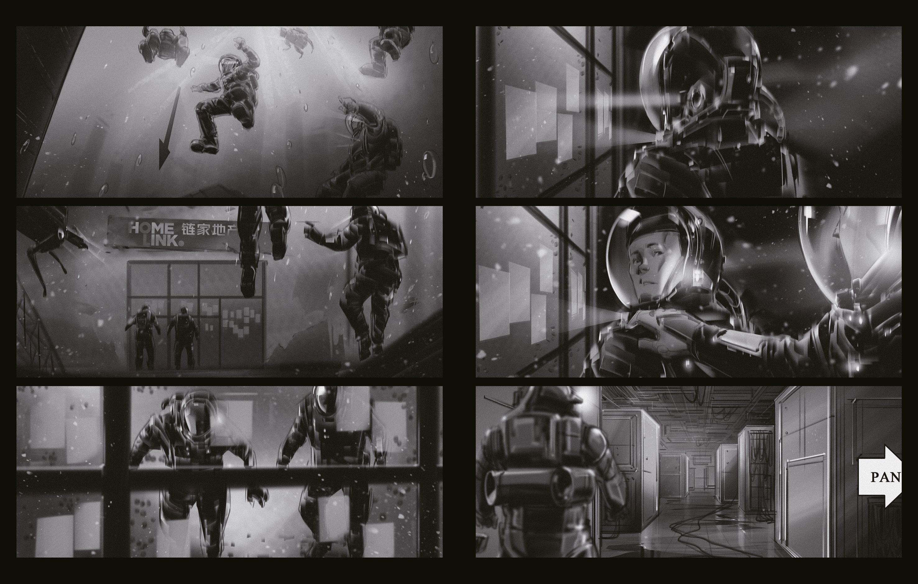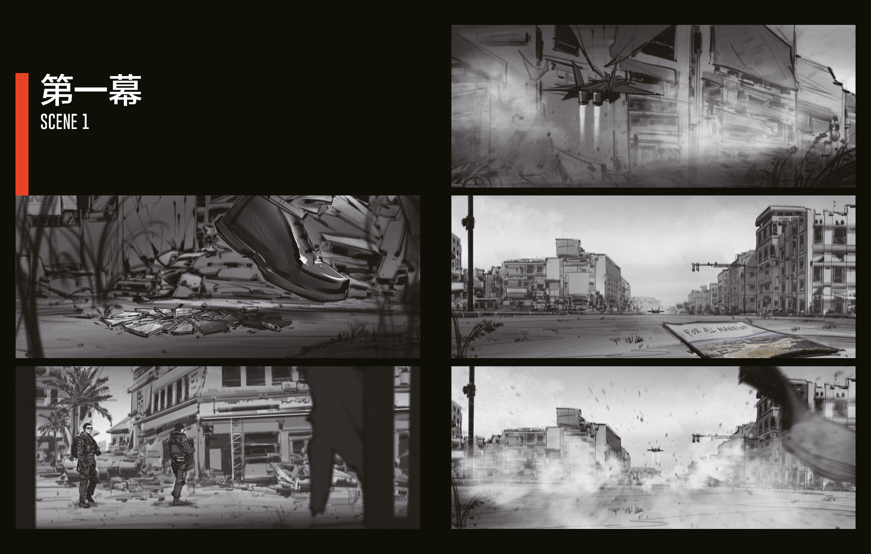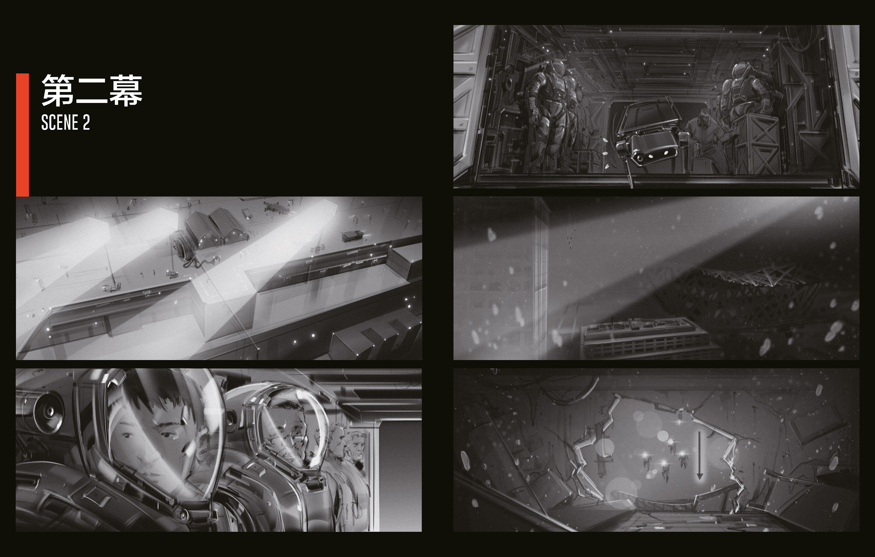 《流浪地球》系列影片 郭帆执导,2019至2023年,费学豪绘制草图,场景2:电影《流浪地球2》分镜图,2023年