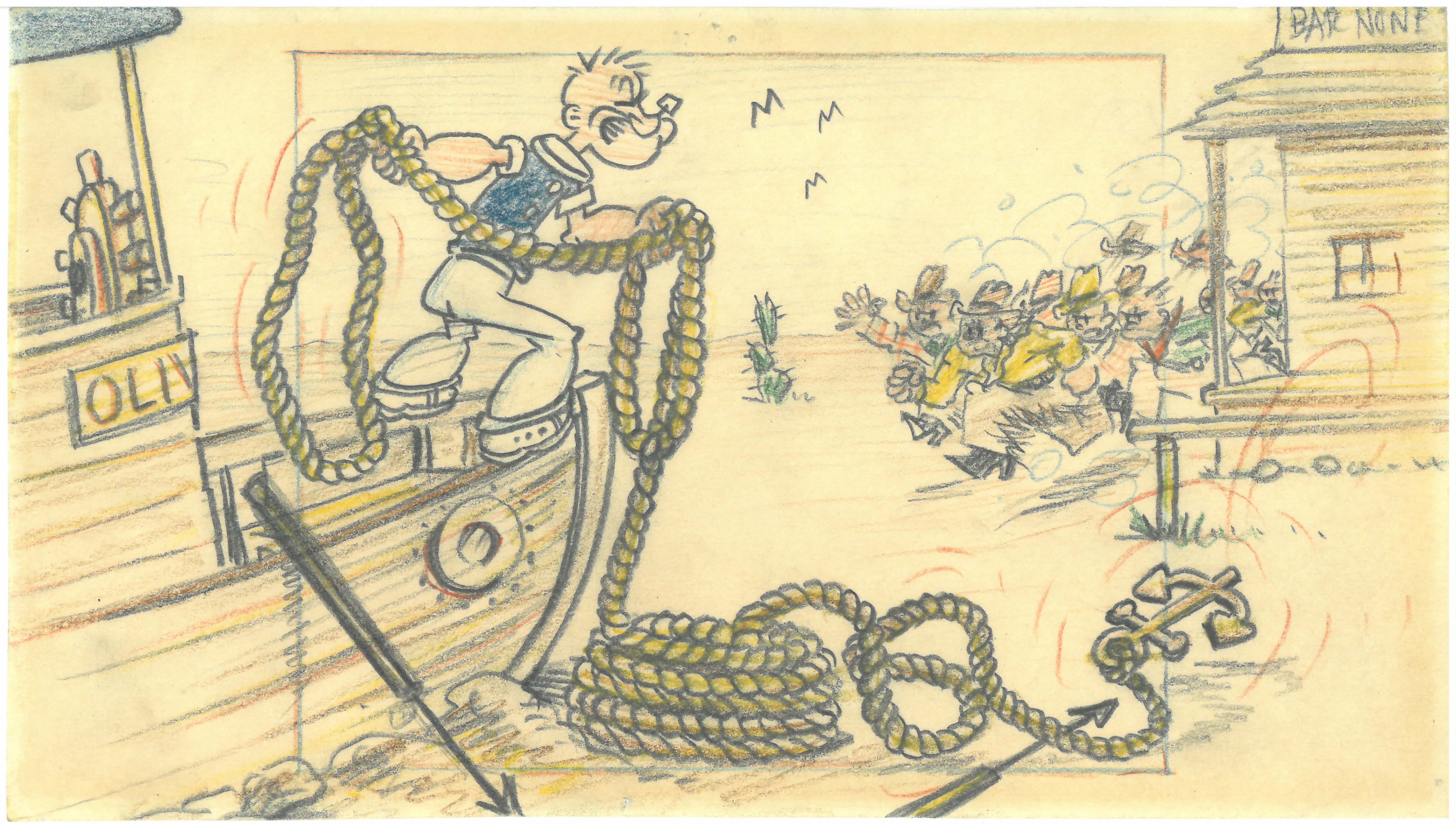 弗莱舍工作室(Fleischer Studios)动画师作品,大力水手模型表,1940年2月,展览用复制品,马奥尼(Mahoney)家族收藏