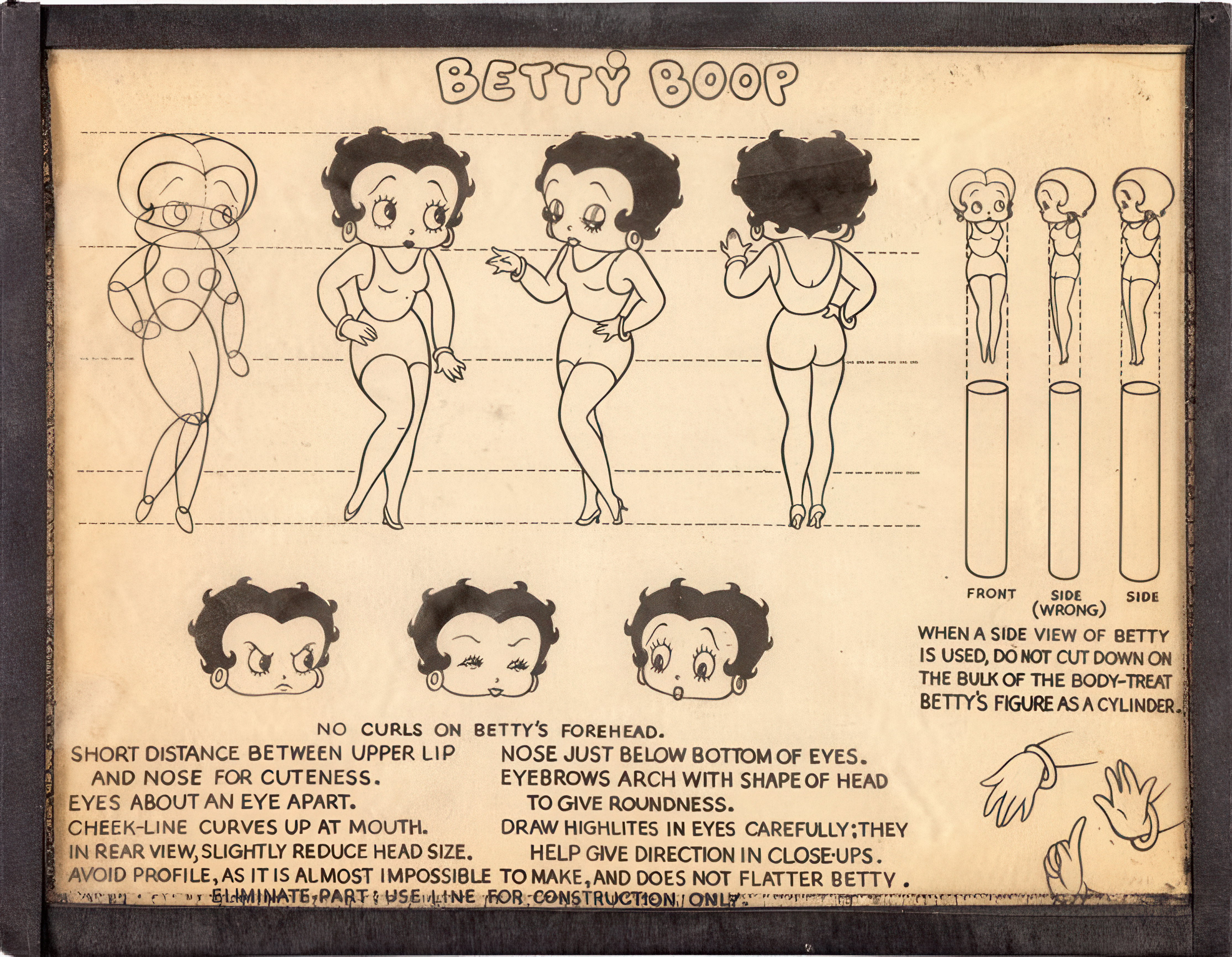 弗莱舍工作室(Fleischer Studios)动画师作品,贝蒂娃娃模型表及注解,约20世纪30年代,展览用复制品,马奥尼(Mahoney)家族收藏