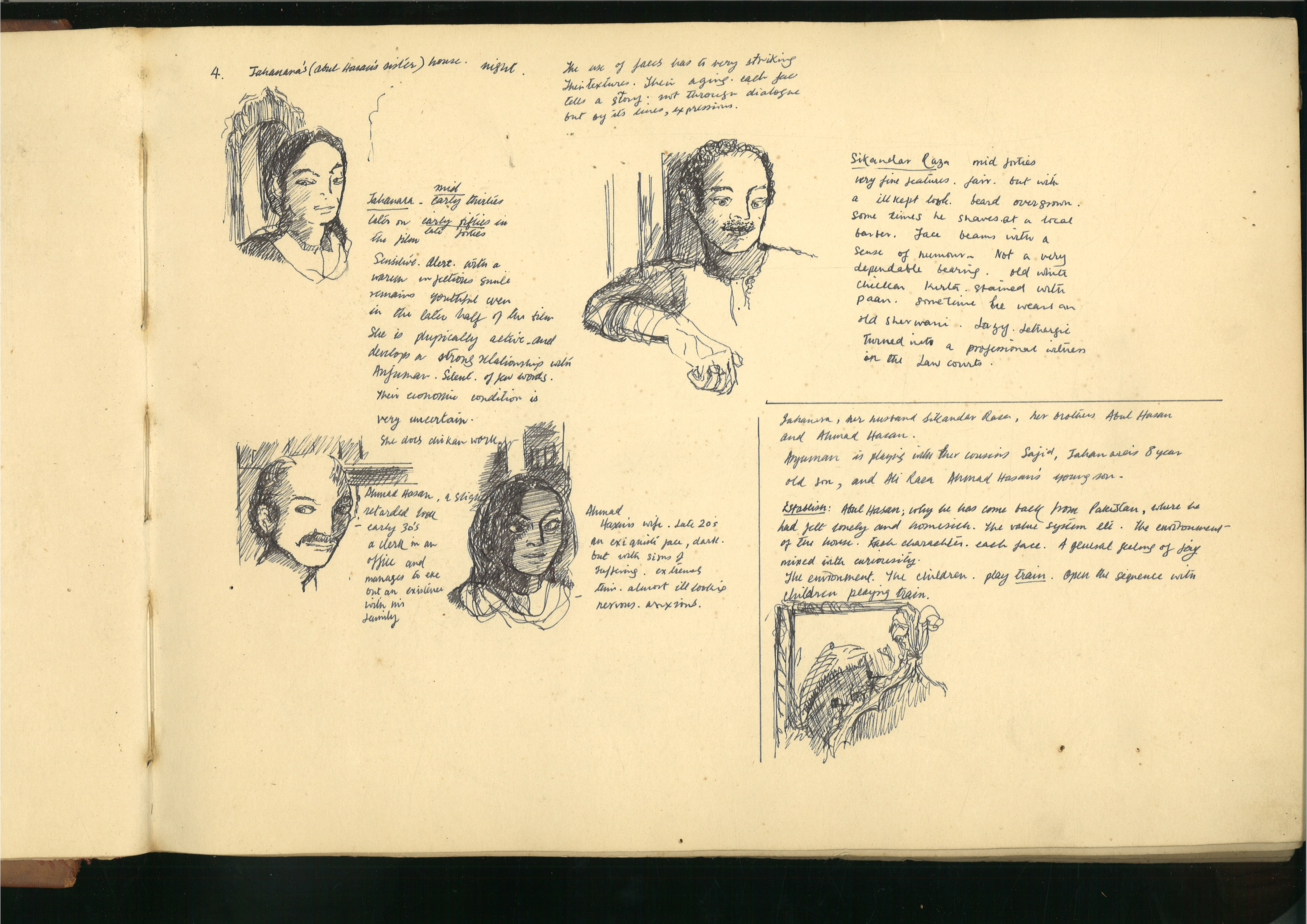 电影主要角色的身份塑造也是分镜图的主要关注点之一,例如在杨荔钠为《春潮》(2019)、《春歌(妈妈)》(2022)绘制的简练草图,以及Muzaffar Ali为《安朱曼》(Anjuman,1986)绘制的注释图稿中,角色的眼神散发出饱含深情的表现力,引人共鸣。演员、导演贾玲在创作她2024年上映的电影《热辣滚烫》(YOLO)的过程中,亦通过拍摄视频的方式,研究和指导自己作为主角的表演。