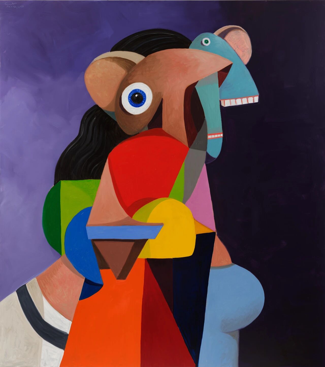 乔治·康多(美国,1957年出生),《巨型玩具头》,2021年,亚麻布面油彩,299.7×266.7 厘米