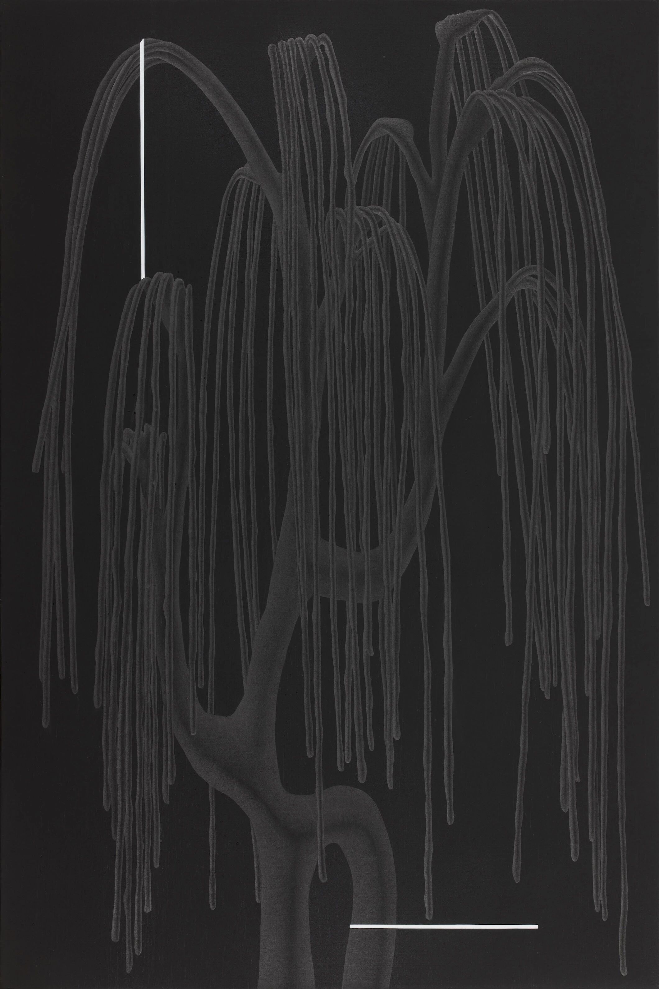 周池的创作超越了个体身体与私人经验,转向对东方美学与哲思的探索。她从中国传统绘画中提炼出“线”的精神与“书写”的哲理,在严密控制节奏的同时,使线条既服从于画面结构,又承载叙事与观念。当“书写”即将彻底解放时,她又在边界处戛然而止,于收与放之间营造出深层的张力。其中隐约构建的身体符号,在相互纠缠中带有既定的轨迹,形成一种互联互通、持续生成的创造机制,从中释放出身体在社会中应有的轻盈与感性力量。正如梅洛-庞蒂所言,“身体是感知世界的中心舞台”。
