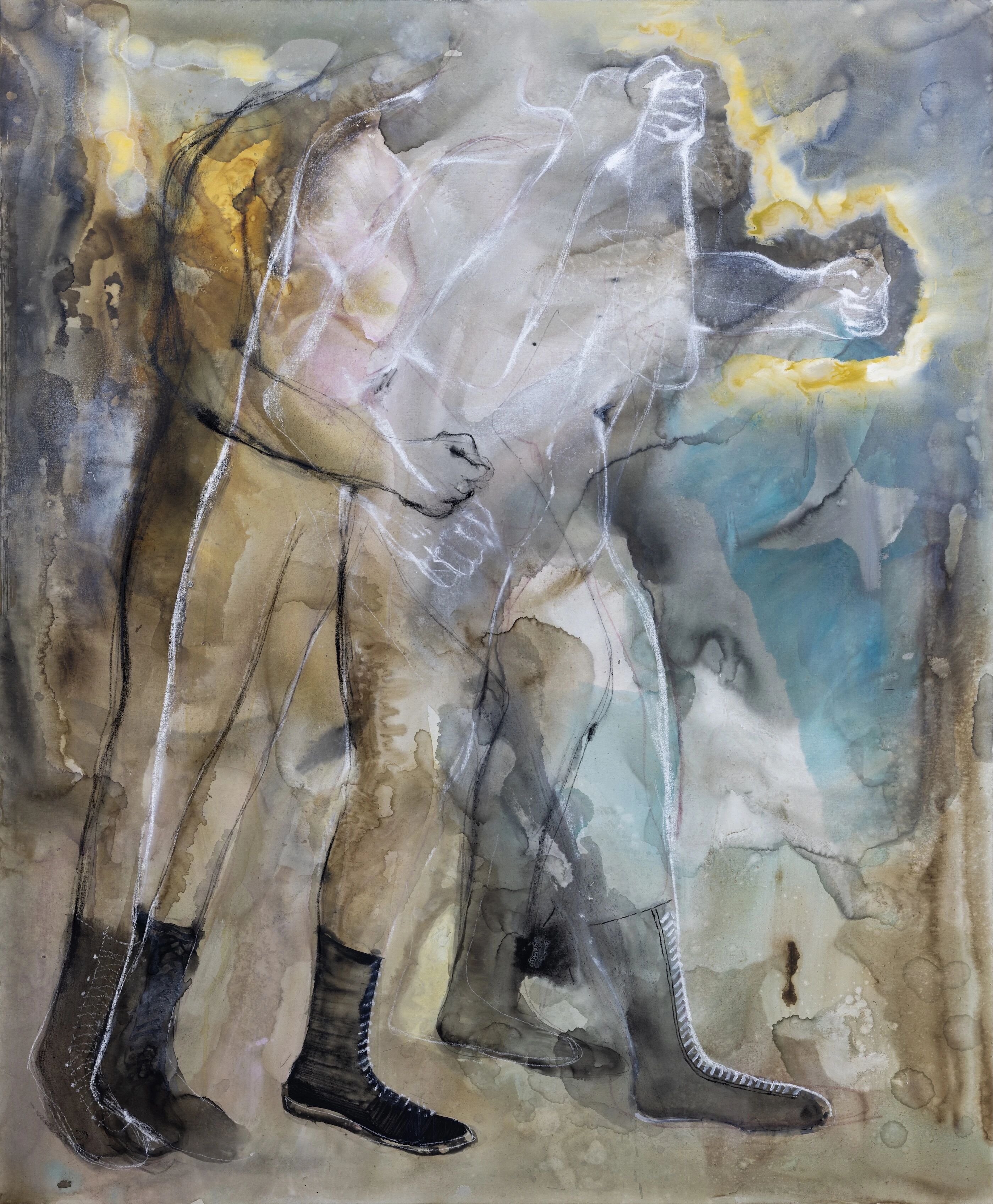 关伟伟,《下垂》,布面上纸、丙烯、铅笔,120 × 80 cm,2023