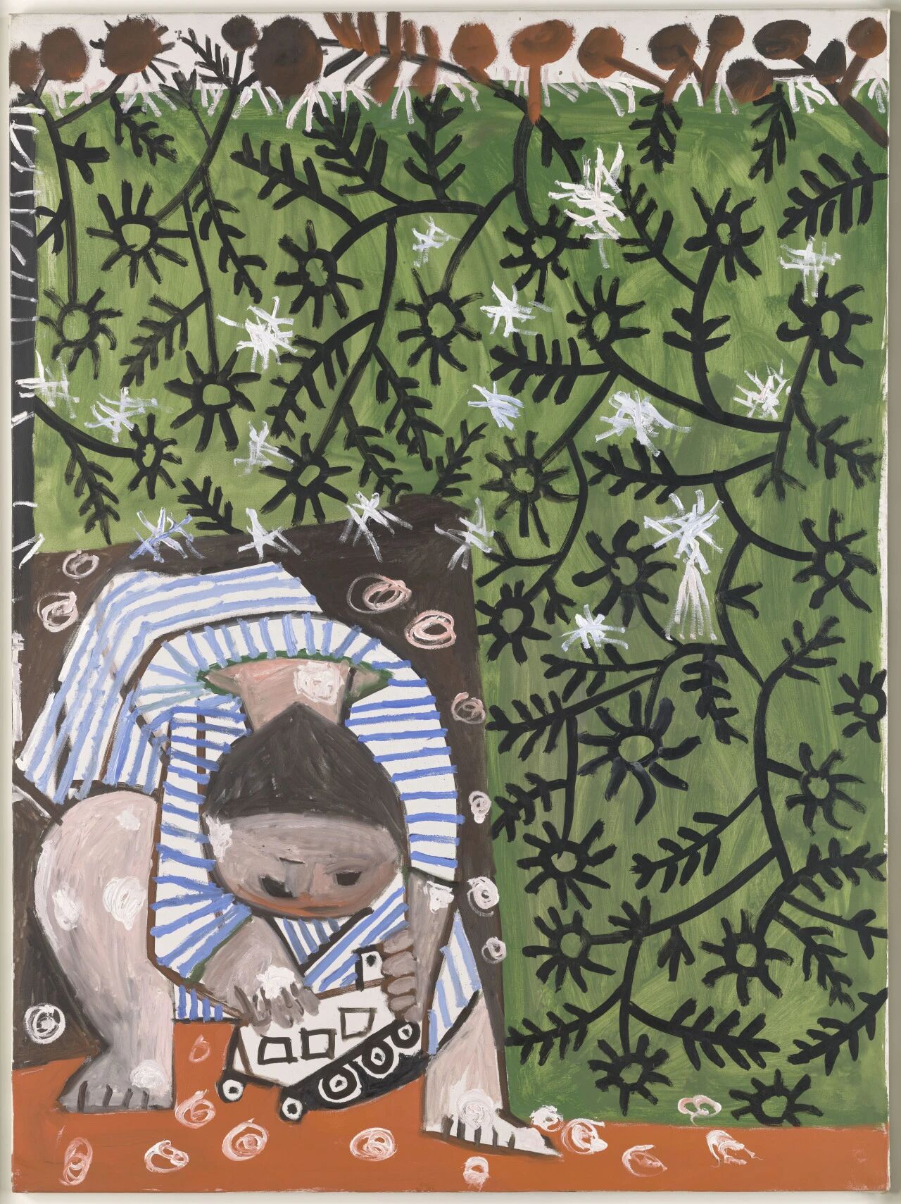 巴勃罗·毕加索《与玩具卡车玩耍的幼儿》1953,布面油画© GrandPalaisRmn (musée national Picasso-Paris)/Adrien Didierjean