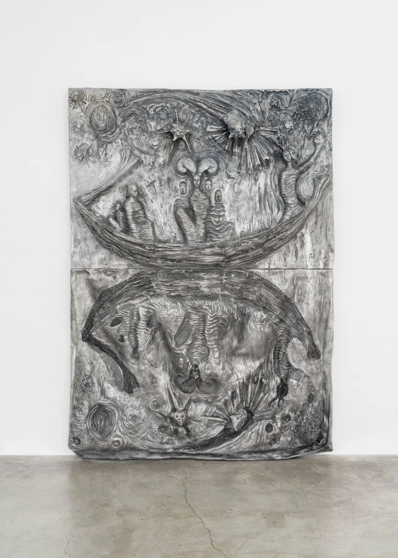 Jean-Marie APPRIOU《奇点穹界 (太初之舟)》|Event Horizon (primordial vessel), 2024 ,Patinated aluminiumOverall (made in 2 parts) : 280 x 194 x 27 cm | 110 1/4 x 76 3/8 x 10 5/8 inches© Jean-Marie APPRIOU, Paris, 2025.Courtesy of the artist and PerrotinPhotographer: ©Tanguy Beurdeley