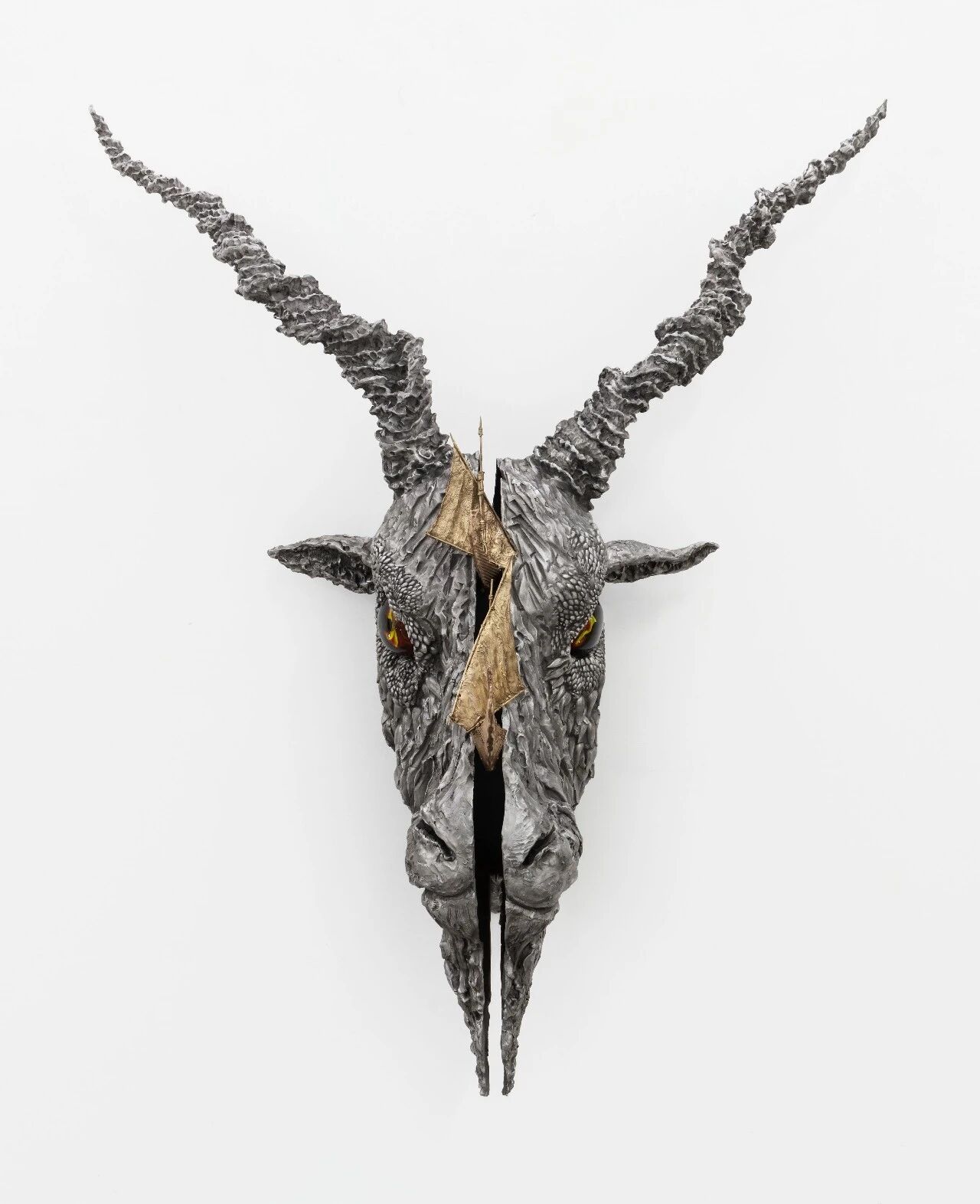 Jean-Marie APPRIOU《摩羯圣扉》|Porte du Capricorne , 2025 Patinated aluminum, bronze and glass280 x 217 x 113 cm | 110 1/4 x 85 7/16 x 44 1/2 inches© Jean-Marie APPRIOU, Paris, 2025.Courtesy of the artist and PerrotinPhotographer: ©Tanguy Beurdeley
