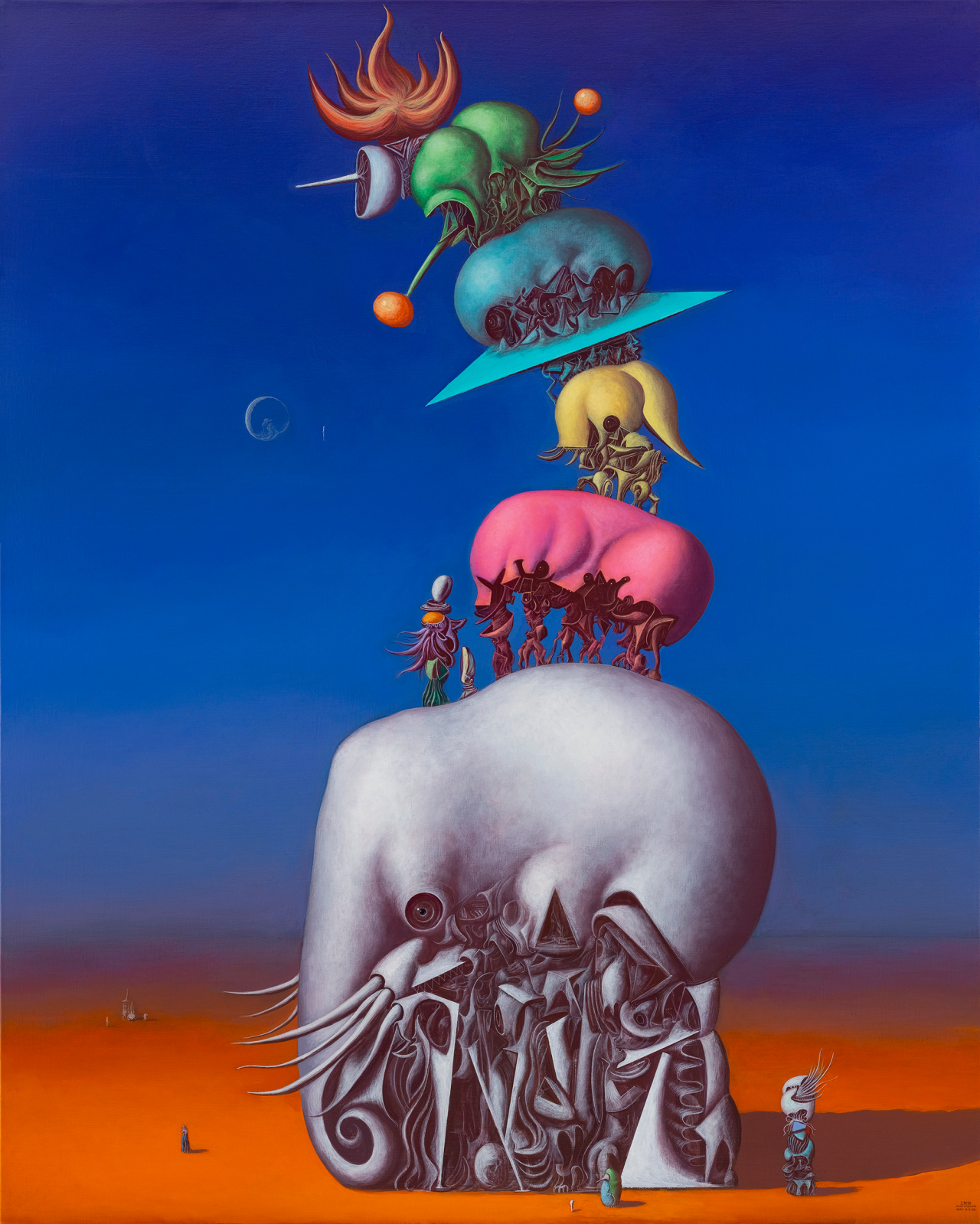驮载星辰的大象, 2025. 布面丙烯上光. 150 x 120 cm. 图片提供:艺术家与贝浩登