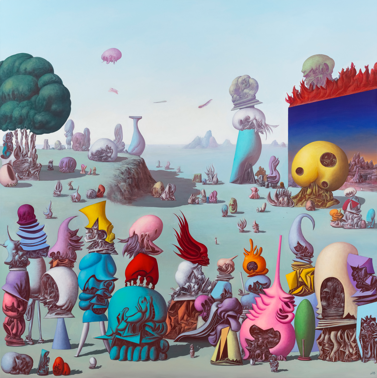 巨人岛上的宴会, 2025. 布面丙烯上光. 180 x 180 cm. 图片提供:艺术家与贝浩登