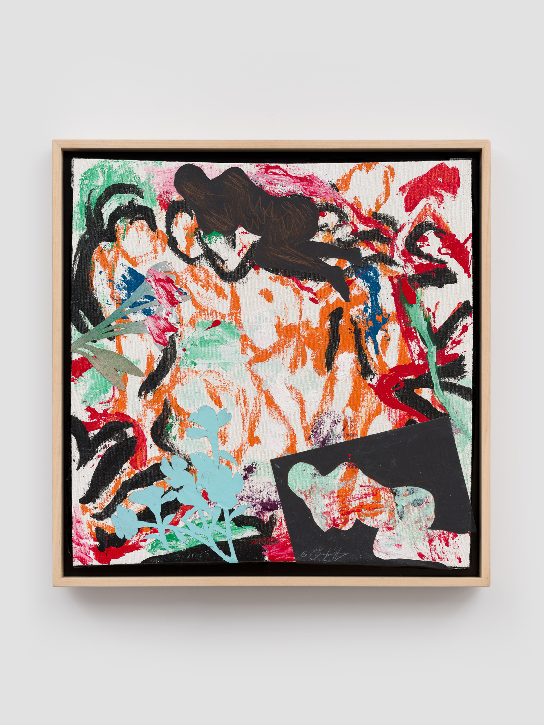 Oliver Lee Jackson, Painting (3.20.23), 2023, Artist oil paints, oil enamels, applied paper, colored pencil on primed linen, 56.2 x 54.6 cm, 22 1/8 x 21 1/2 in © Oliver Lee Jackson. Courtesy Lisson Gallery