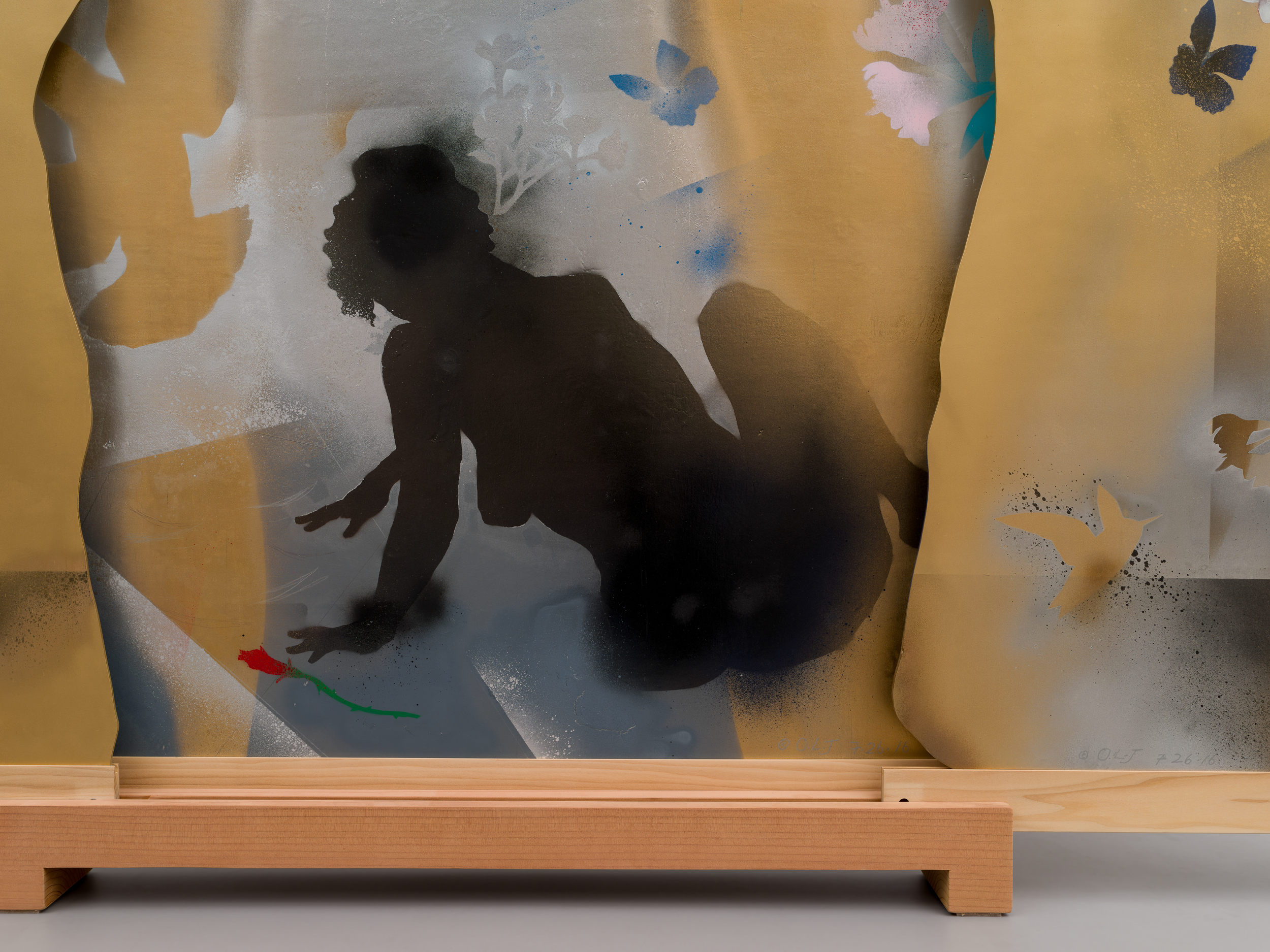 Oliver Lee Jackson, Screen (7.26.16), 2016, Wood, oil-based spray paints, mixed media, 208.3 x 92.7 x 20.3 cm, 82 x 36 1/2 x 8 in © Oliver Lee Jackson. Courtesy Lisson Gallery