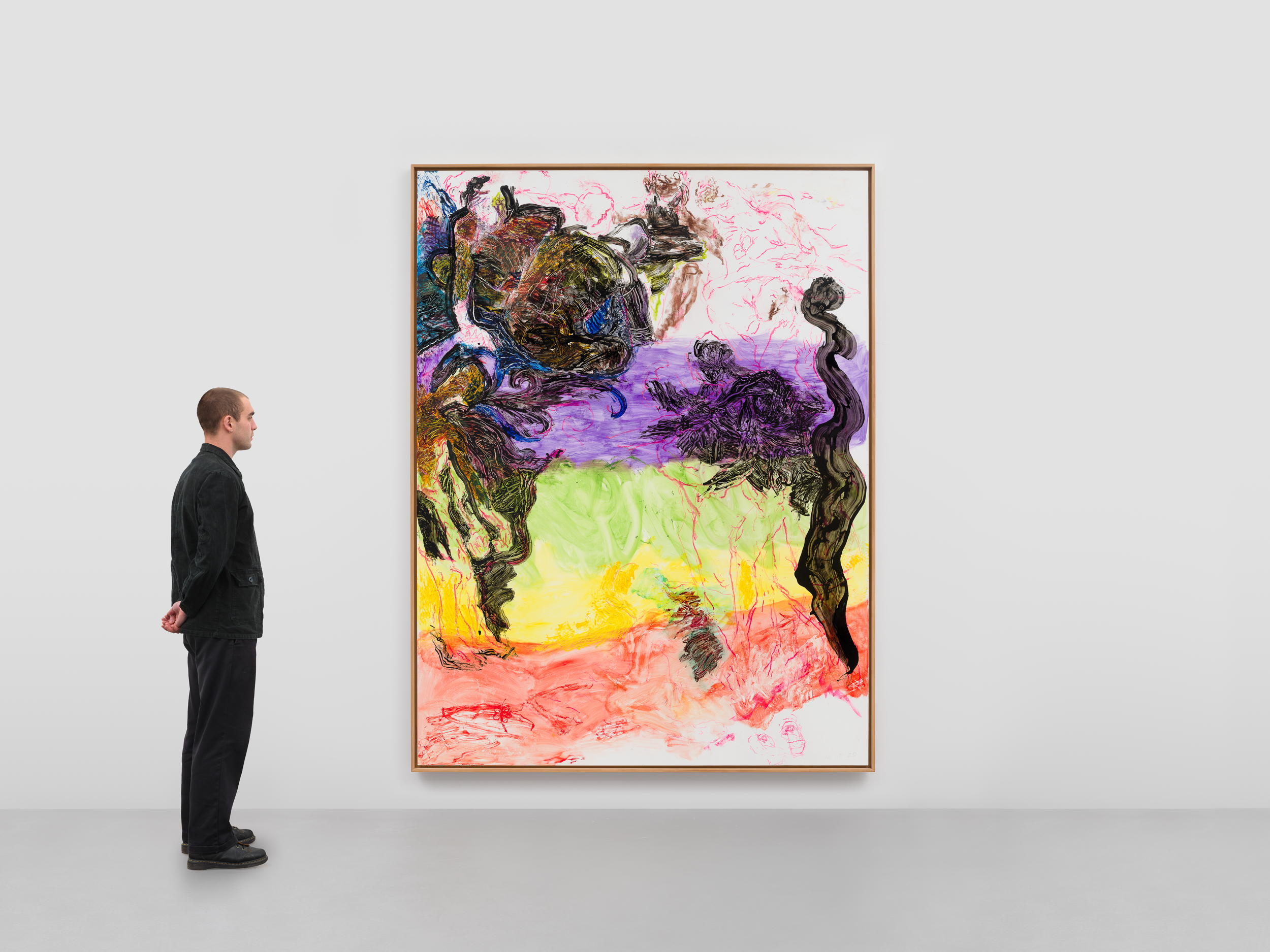Oliver Lee Jackson, No. 4, 2020 (12.10.20), 2020, Oil-based enamel, artist oil paints, chalk, fixative on gessoed panel, 243.8 x 182.9 cm, 96 x 72 in © Oliver Lee Jackson. Courtesy Lisson Gallery