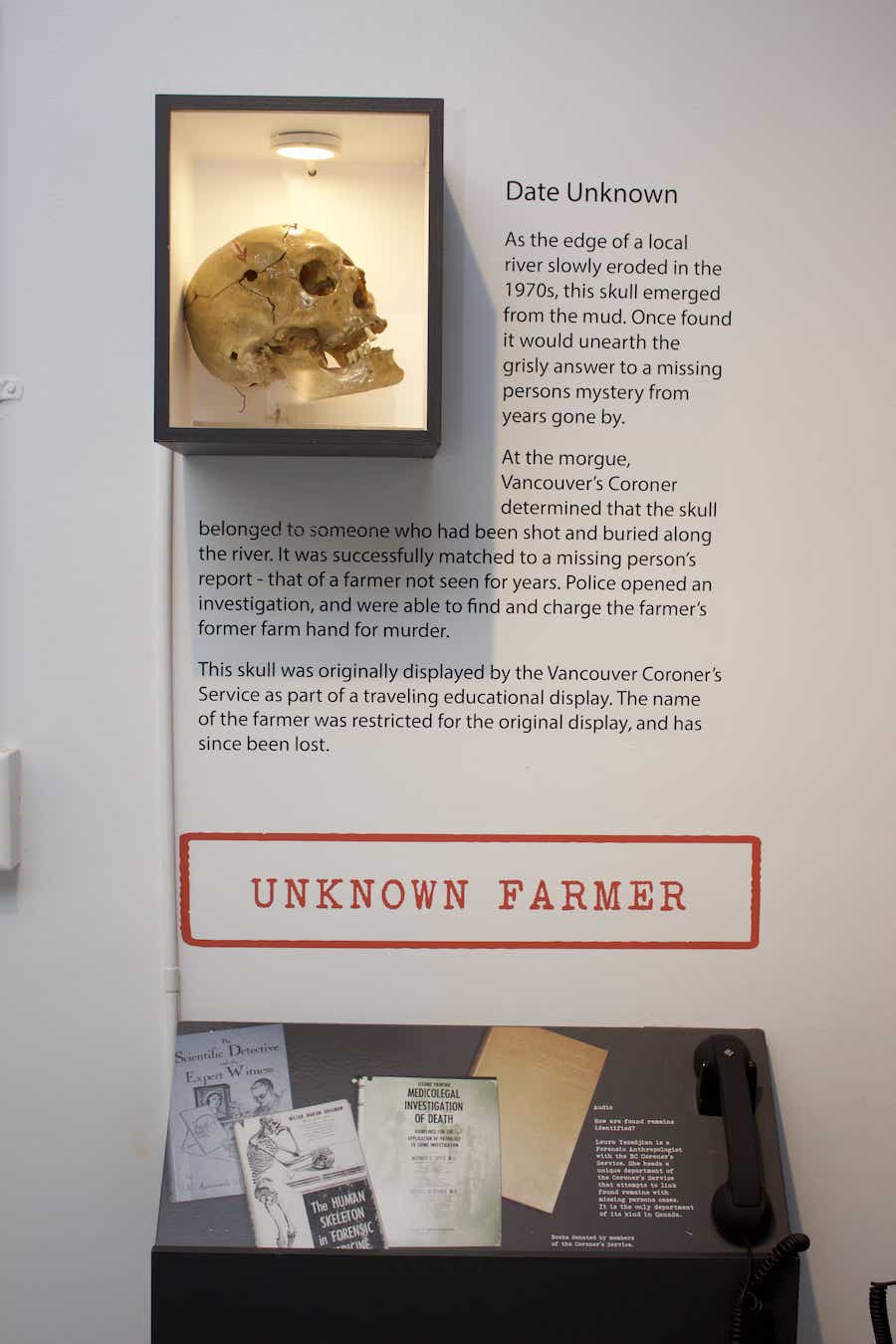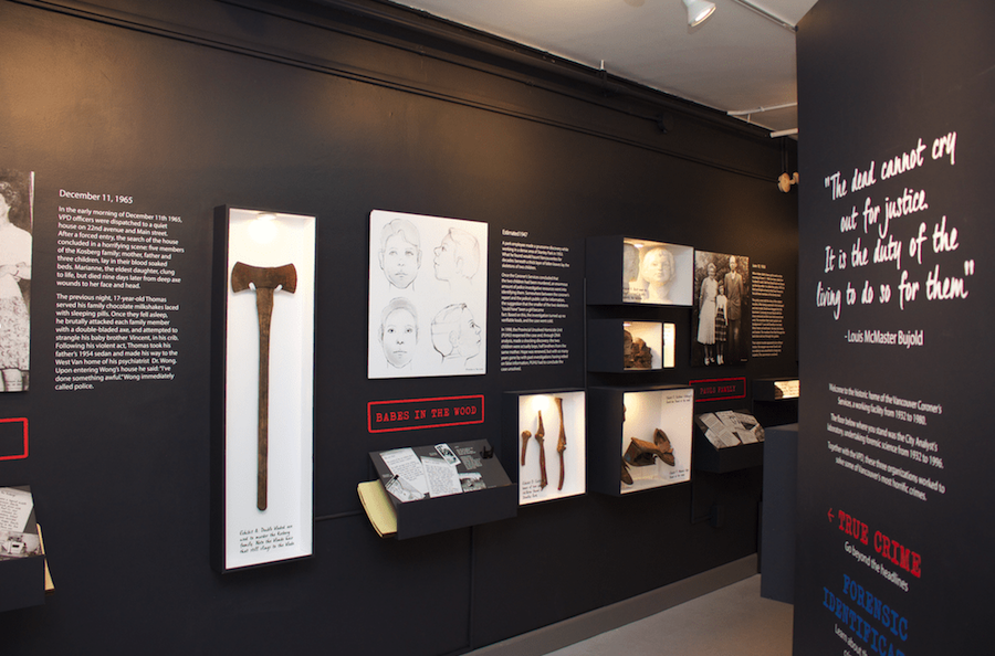 展览探索了温哥华一些最令人不寒而栗的案件。展出案件从尚未破案的的“林中宝贝”神秘谋杀案到臭名昭著的“奶昔谋杀案”,这些故事多年来一直吸引着公众,展品包括原始的犯罪现场证据,罕见照片,事件的详细信息和在案件中使用的调查技术。