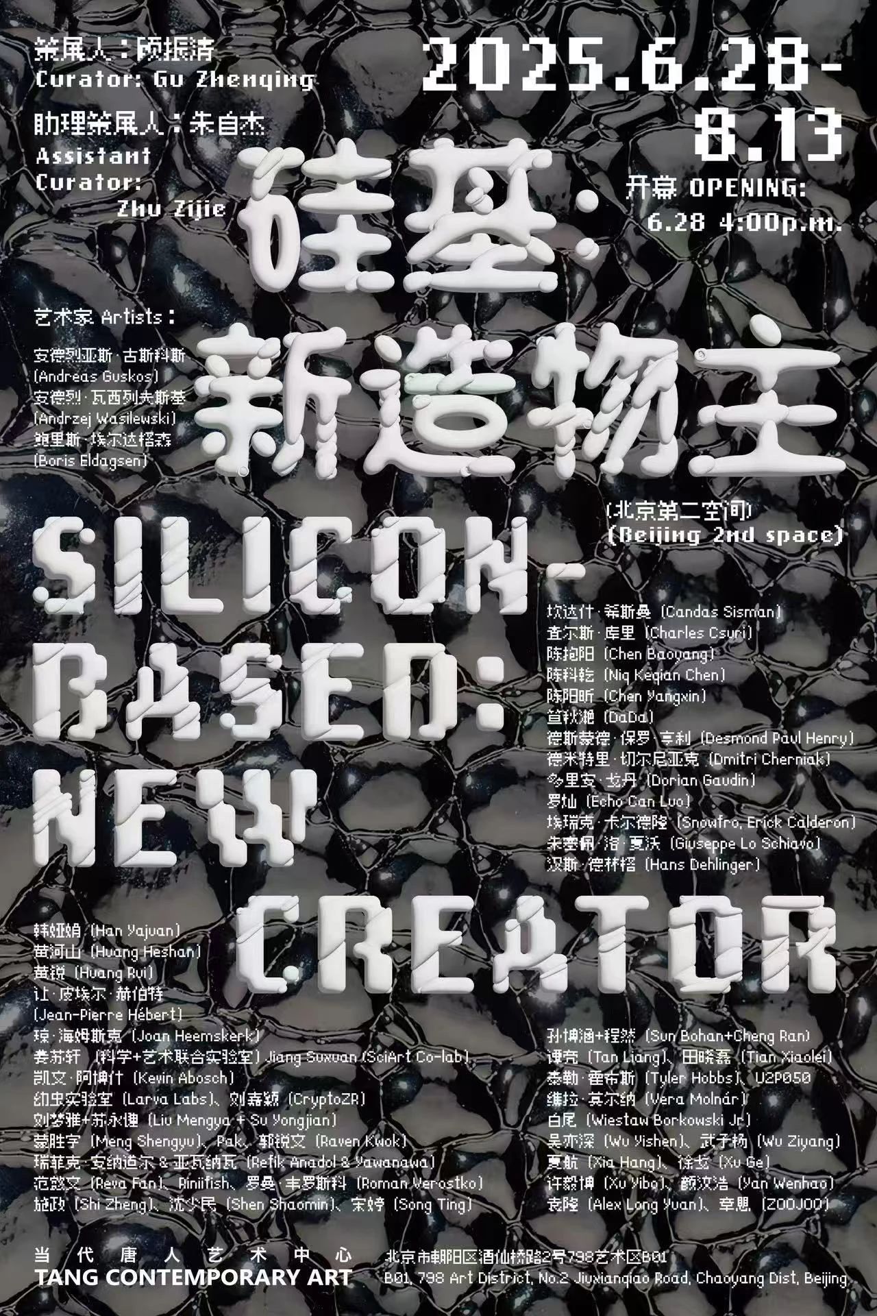 当代唐人艺术中心荣幸地宣布,将于2025年6月28日下午4点在北京798第二空间推出大型数字艺术群展“硅基:新造物主”。本次展览由著名策展人顾振清策划,朱自杰担任助理策展人,展览分《重返伊甸》、《逻辑电路》、《数字宇宙》、《后人类》四大板块,共汇集全球共51位(组)艺术家的数字艺术作品。