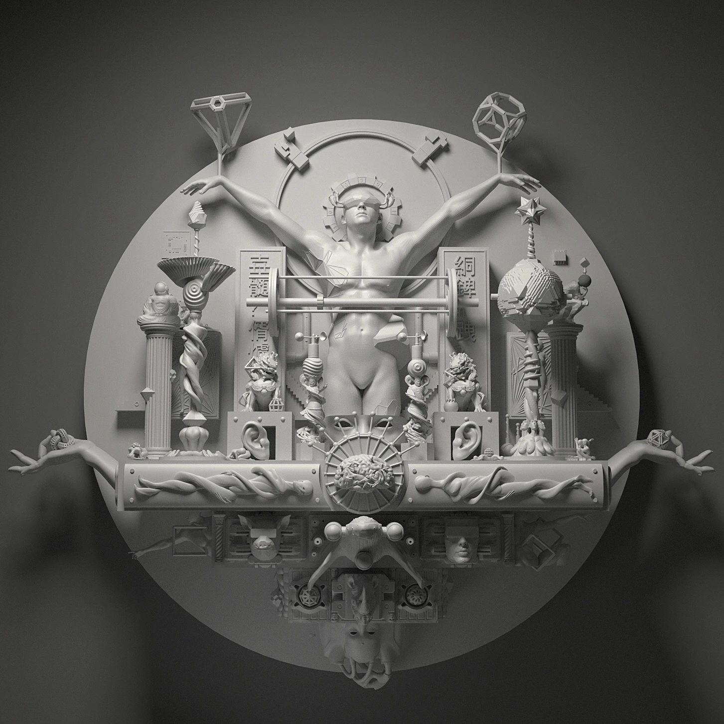 田晓磊,《大仪式》,壁挂雕塑、木、树脂综合材料,120 × 120 cm,2024