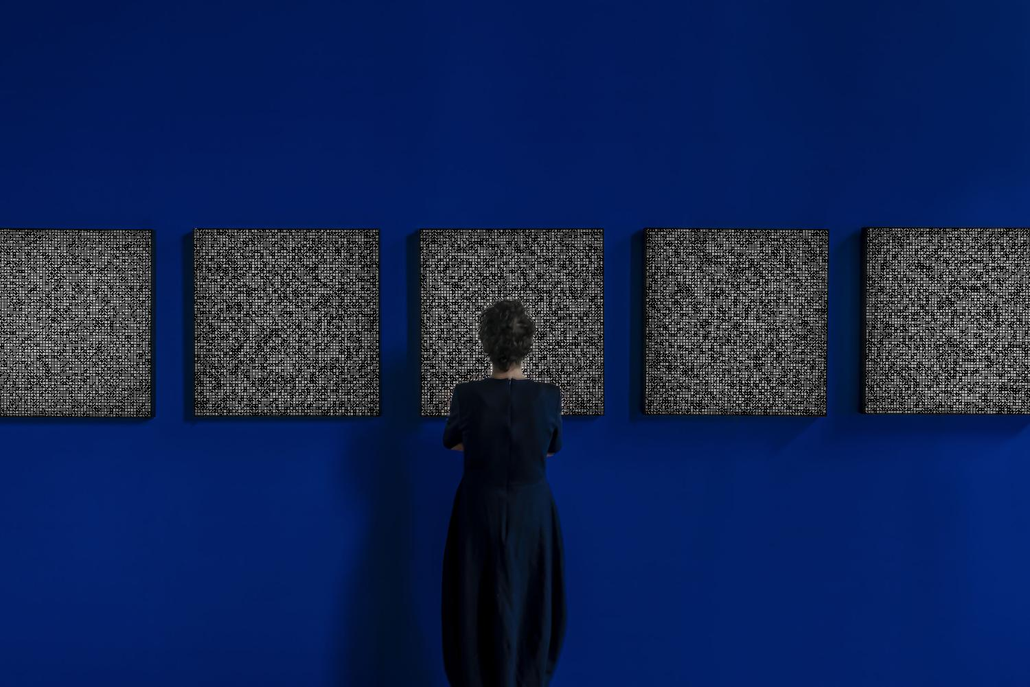 坎达什·希斯曼,《可能性模式V2:过程&时刻》,生成装置、6个灯箱、视频、声音、屏幕、生成系统录音,2022