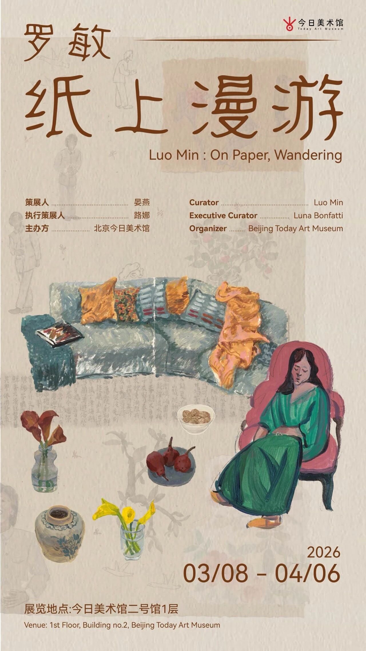 2026年3月8日,由今日美术馆主办,策展人晏燕策划的艺术家罗敏最新个展「纸上漫游」于今日美术馆2号馆1层正式开幕。本次展览汇集罗敏横跨多个创作阶段的纸本作品近400件,系统梳理了这位兼具现实沉毅与细腻温情的艺术家近10年的纸上作品创作脉络。