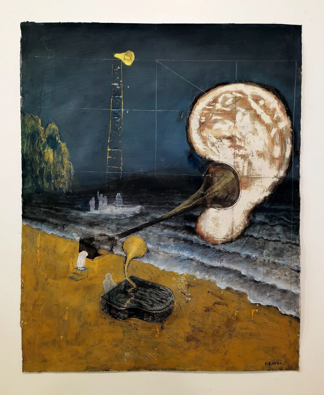 何工《五月—耳鸣的隐喻》222cm×86cm 纸本丙烯 2025年